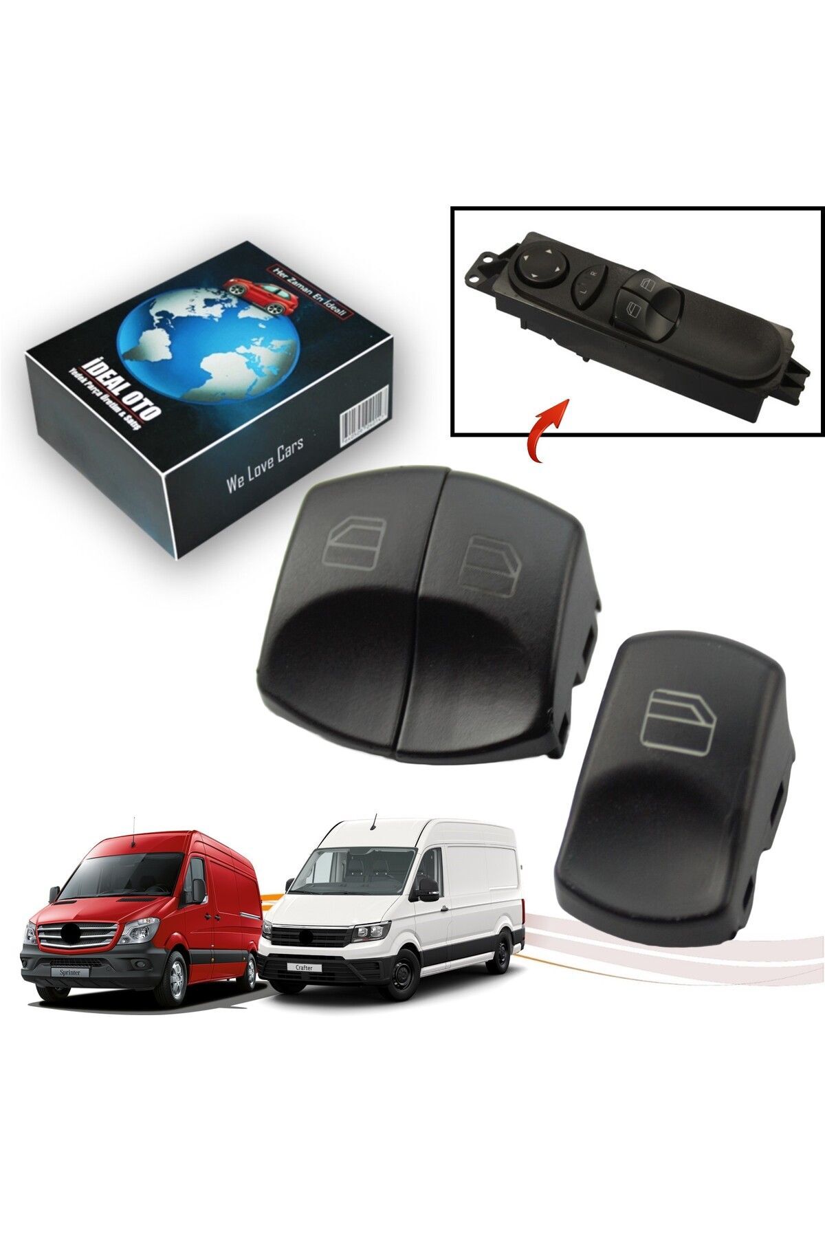 MERCEDES Sprinter II (906) [ 2006 2014 ] VOLKSWAGEN Crafter 30, 35, 50 (2E/2F) [ 2006 Sonrası ] Ön Sol Panelin 2li Düğmesi + Ön Sağ / Arka Sol / Arka Sağ Toplam 3 Adet Gönderilmektedir Düğmeniz kırıldığında Plastik Düğmeyi kolayca değiştirin Ürün Raf No : C 97 C 88 İD 02 388/3lü